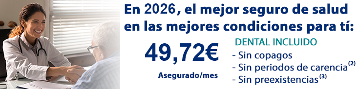 1) Prima total por persona y mes válida hasta 31/12/2026. Para el personal activo y su cónyuge/pareja de hecho no existe límite de edad de contratación. Caso de los hijos, límite hasta los 26 años inclusive.